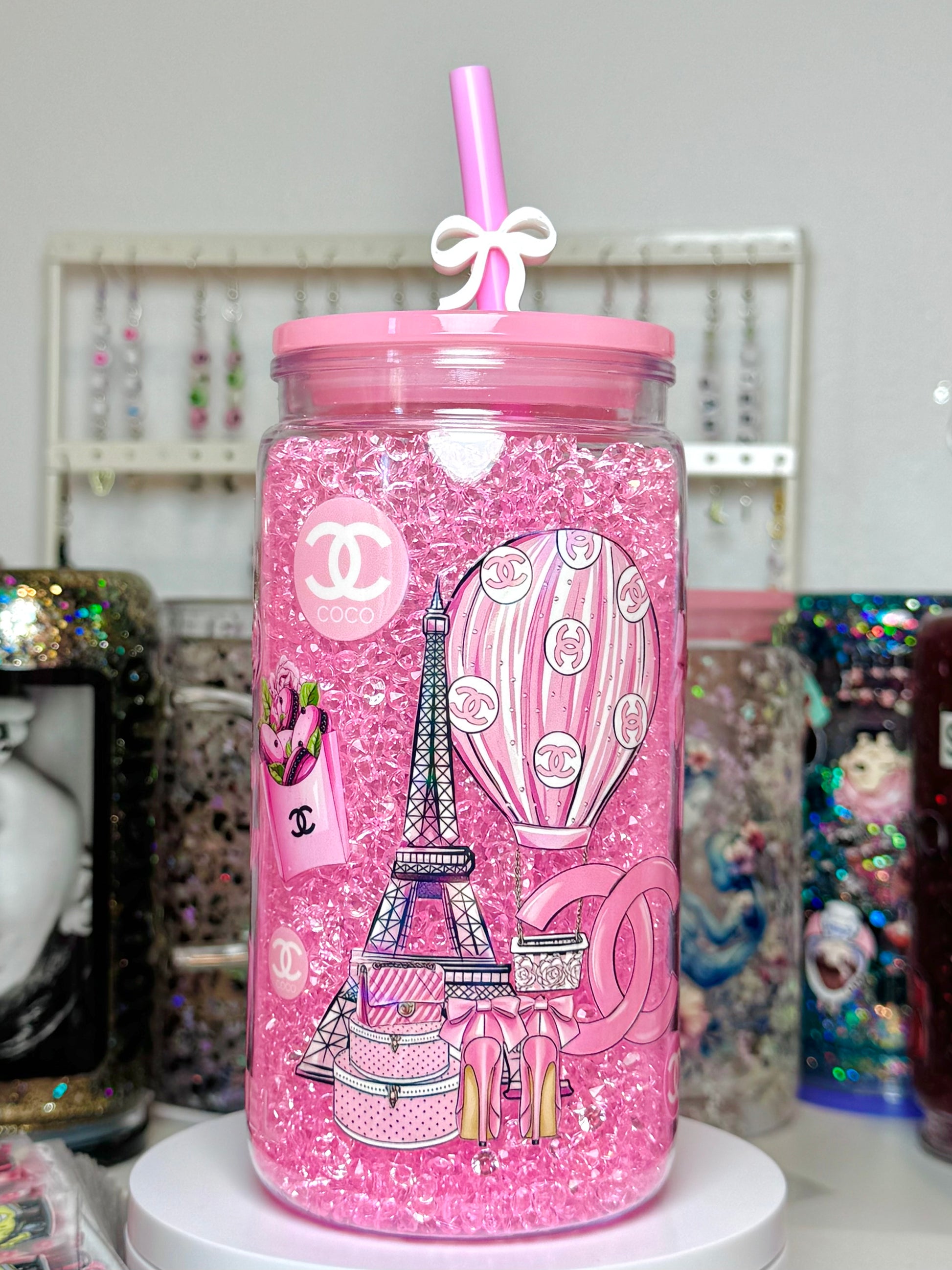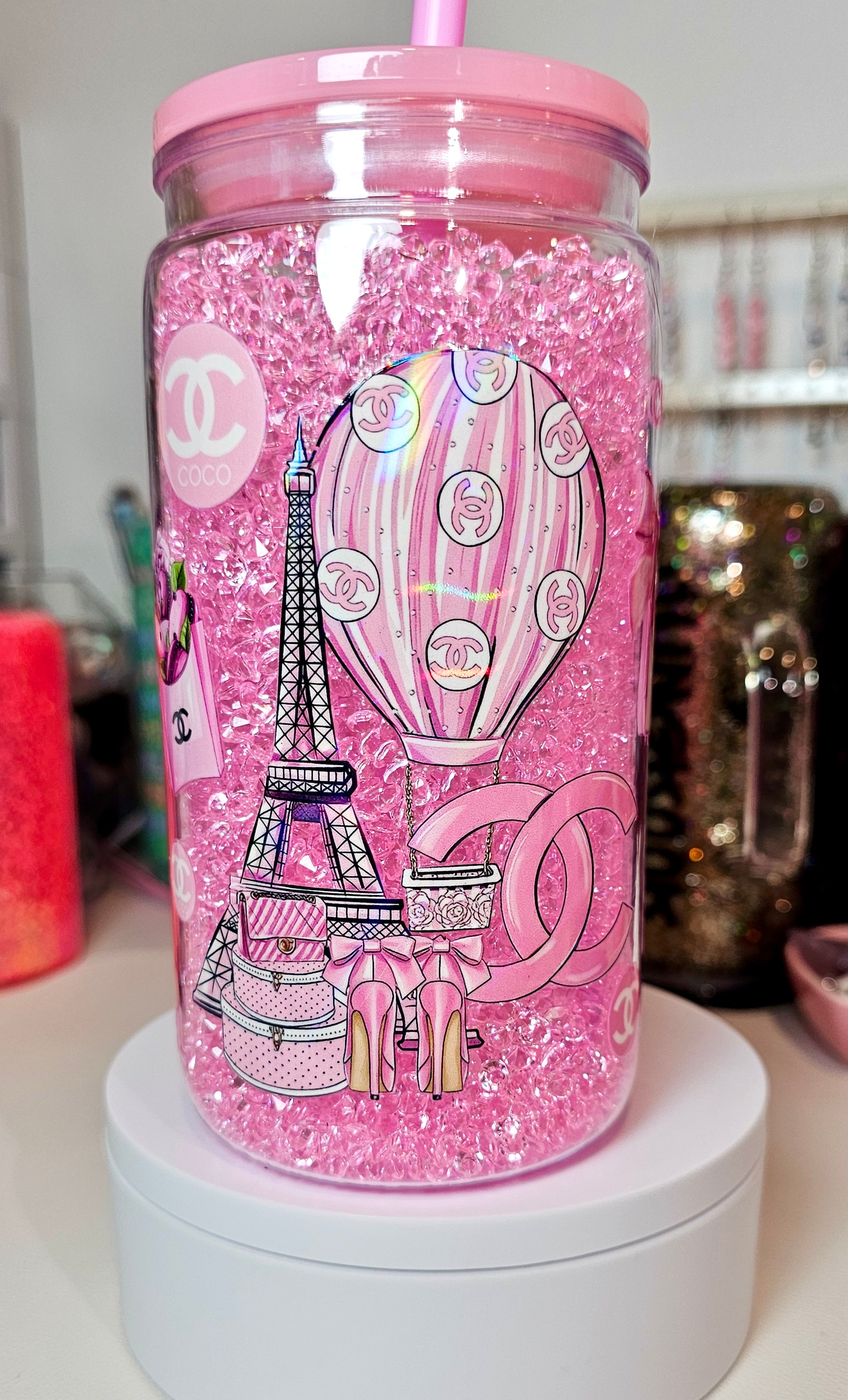 Chanel Holographic Snow Globe Tumbler Cup with Plastic gems 16 oz