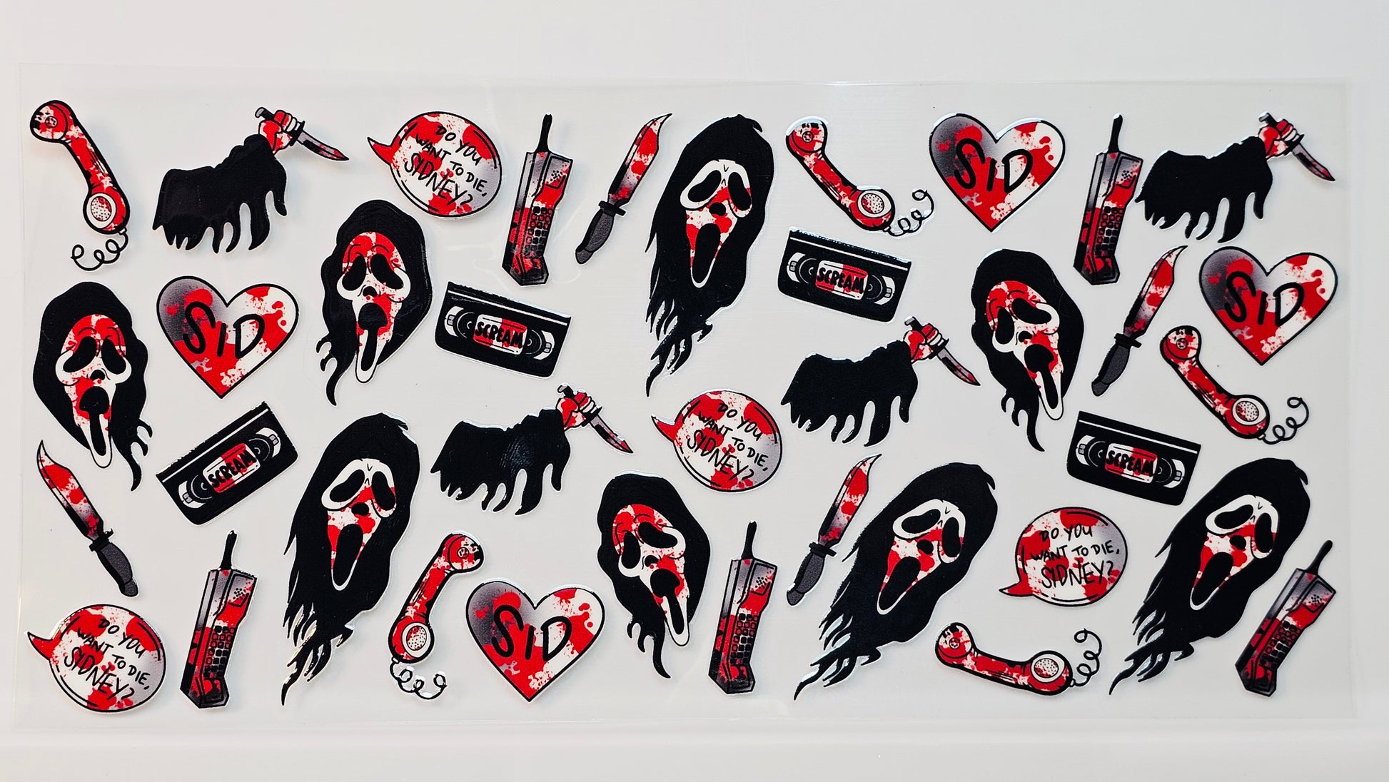 Scream Ghostface Halloween Hearts Horror Movie UVDTF Wrap 16 oz