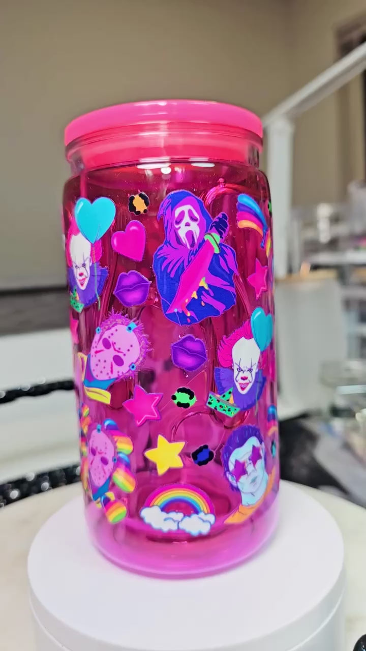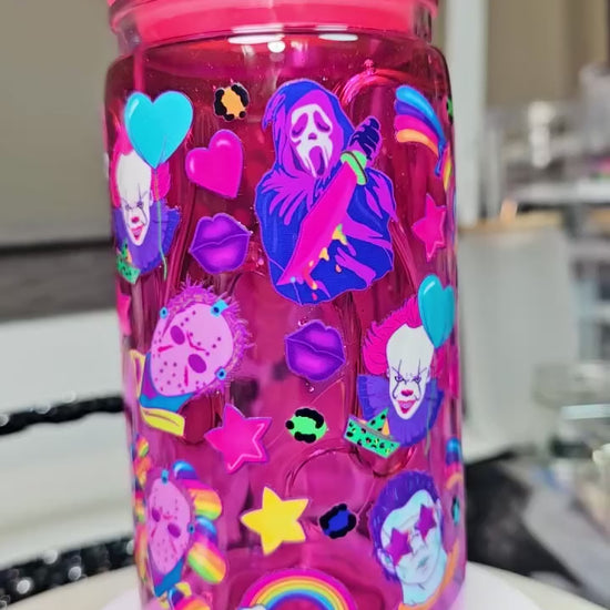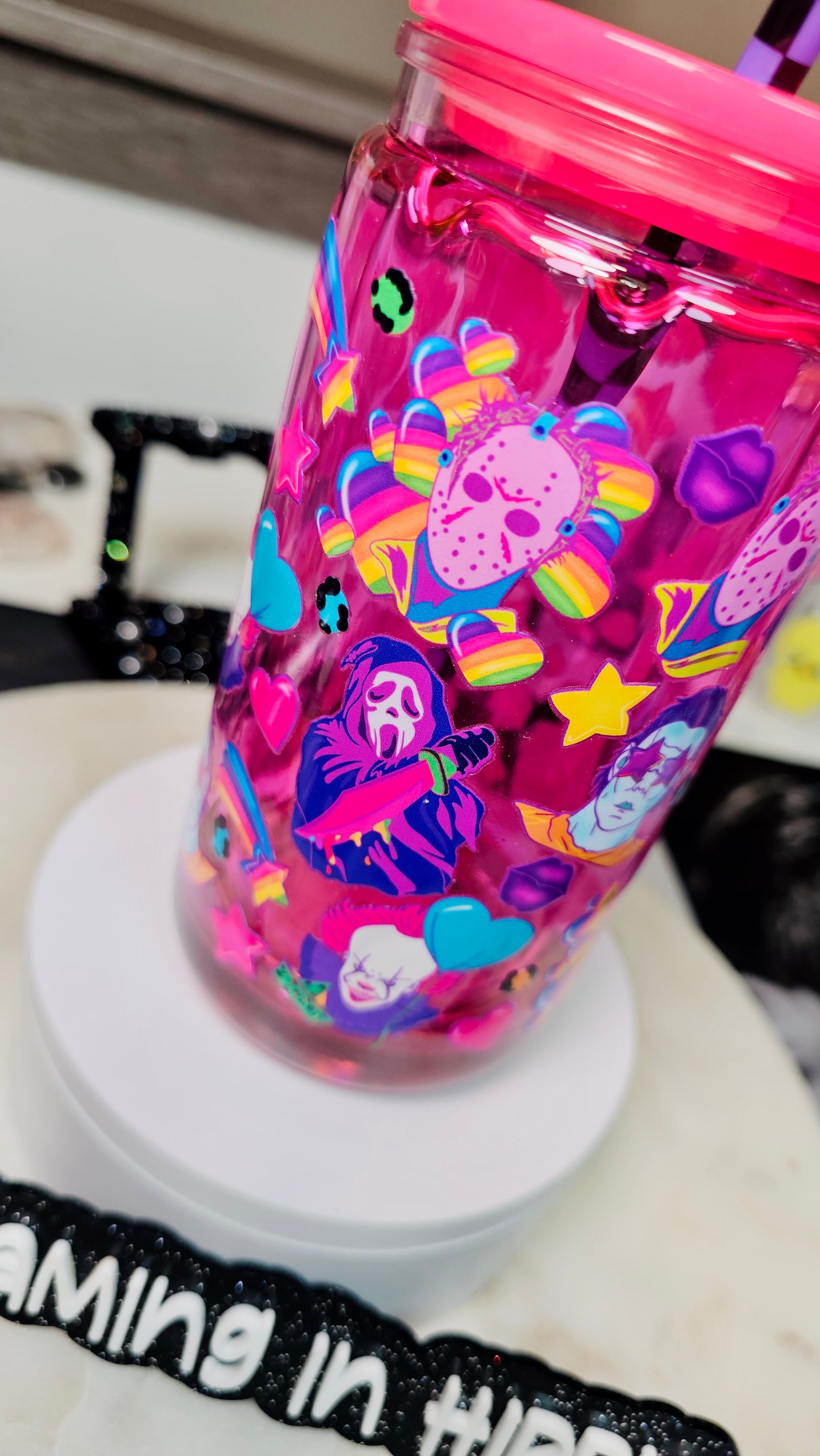 Pink Drip Snow Globe Cup Halloween Horrors Tumbler Cup 16 oz Purple Color Shifting Glitter / Sarcasm